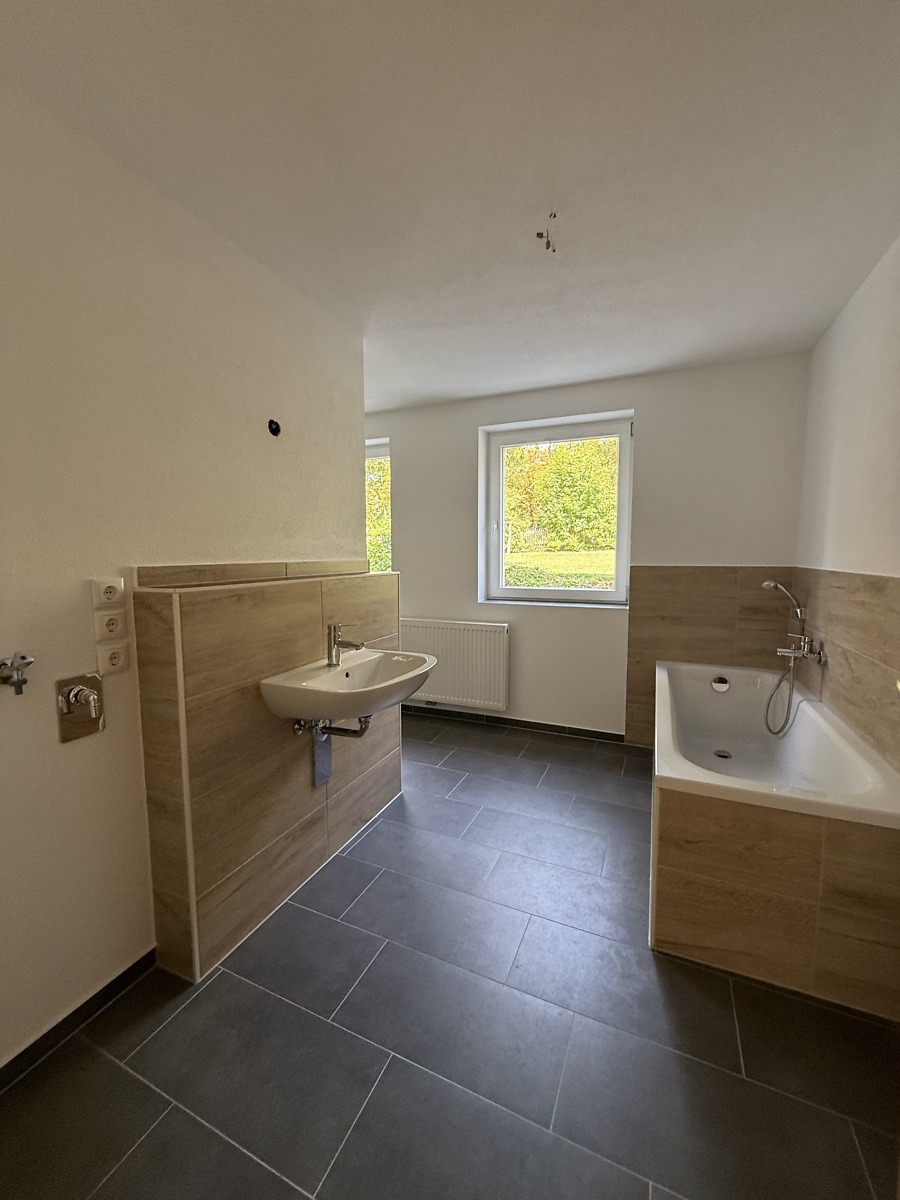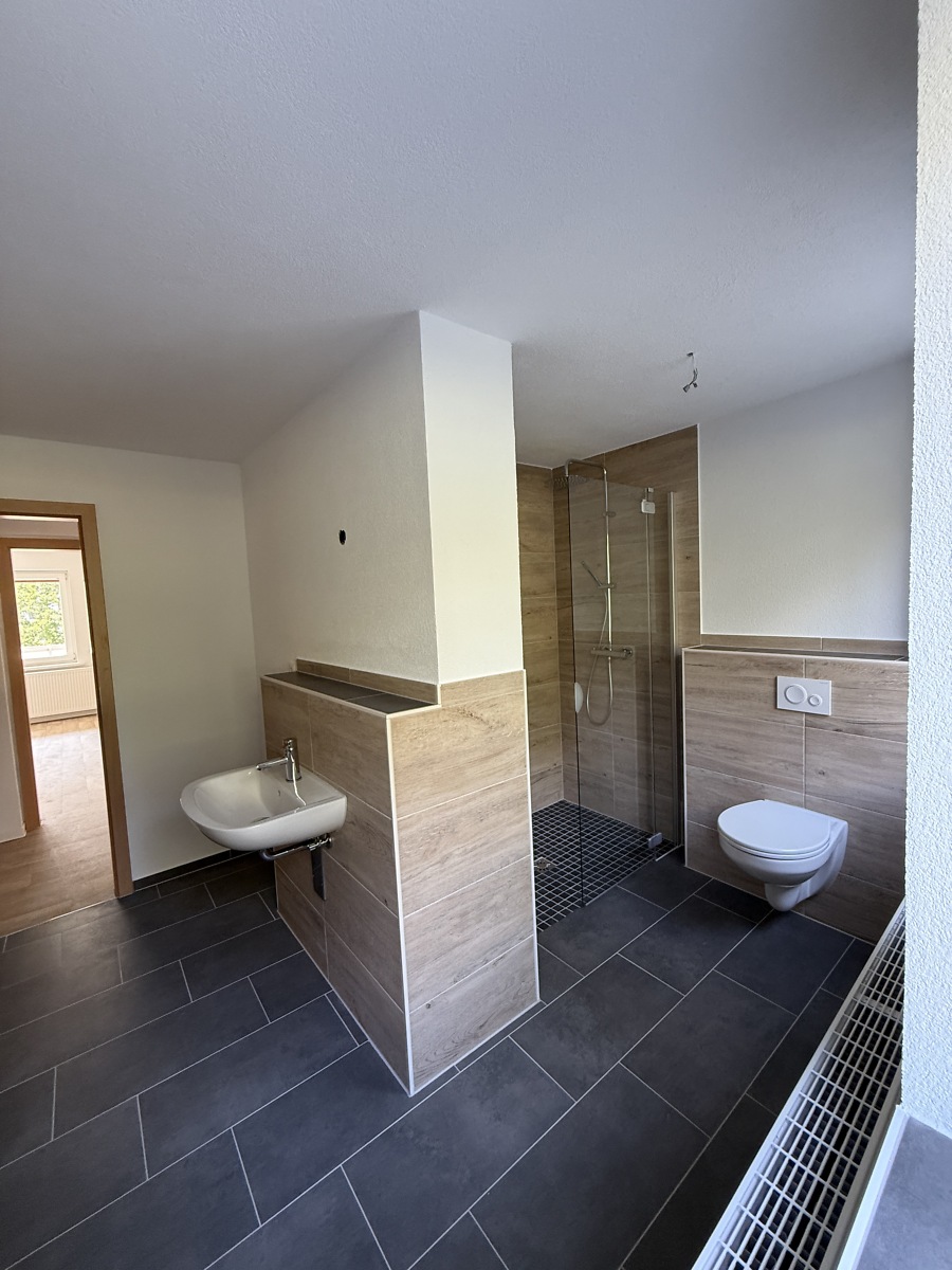 - modernes Bad mit Dusche (barrierearm) und Wanne