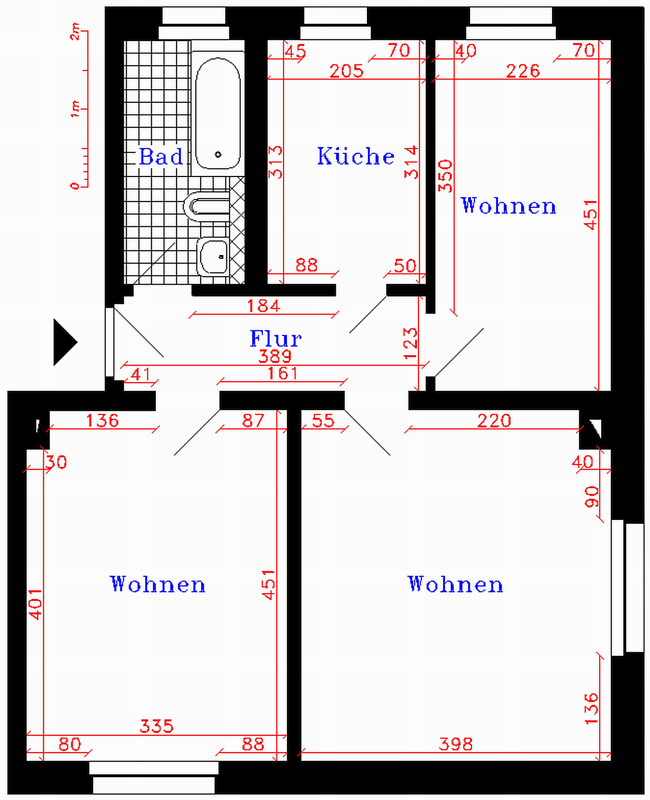 Saniert, Zentralheizung, Bad mit Wanne, alle Räume mit Fenster, Keller zur Wohnung.