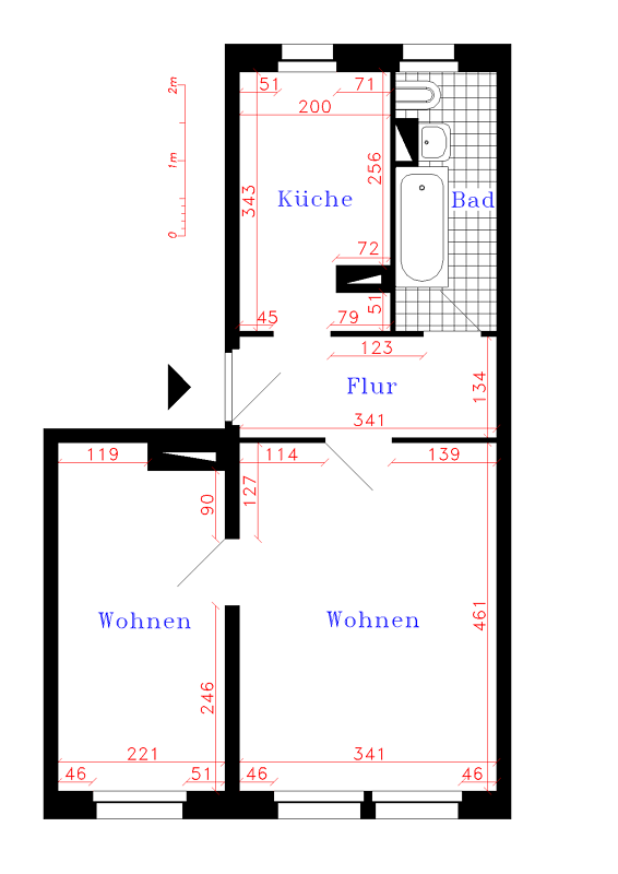 Saniert, Etagenheizung, Bad mit Wanne, alle Räume mit Fenster, Keller zur Wohnung.